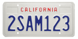 A standard California license plate typically consists of seven characters that begin with one digit (0-9), followed by three letters (A-Z), and then end with three digits (0-9). Examples of standard license plate combinations include 1SAM123 and 2GDU023.